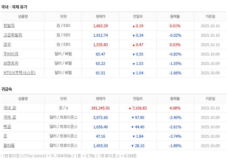 ⑥ 원자재 & 금 시황 ― 국내 금 급등, 유가 조정
