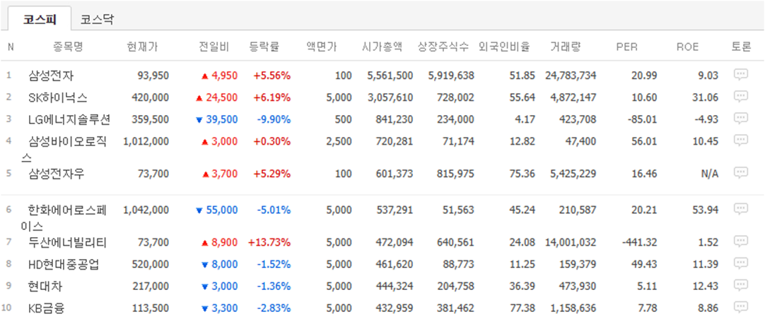 삼성전자(+5.56%), SK하이닉스(+6.19%)가