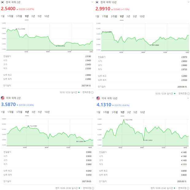 한국 2년물은 2.54%, 10년물은 2.99%.