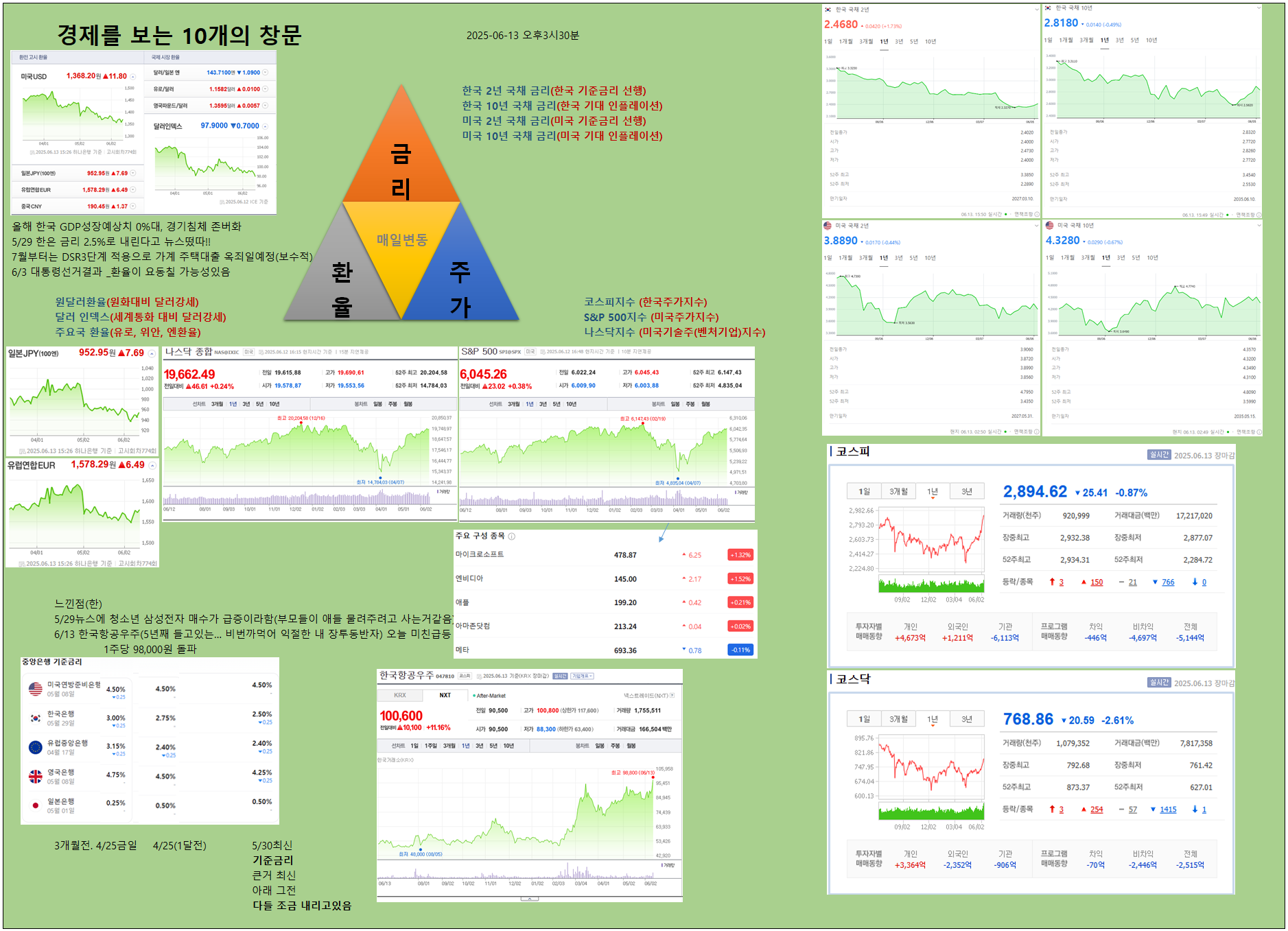 이번 주 흐름을 **‘경제를 보는 10개의 창문’**으로 정리해본다.