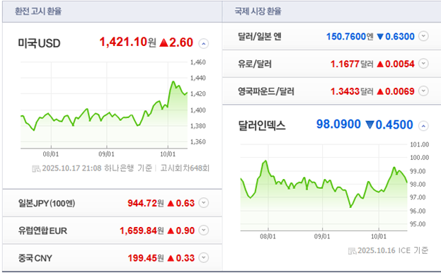 달러/원: 1,421.10원 ▲ +2.60