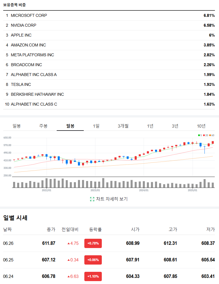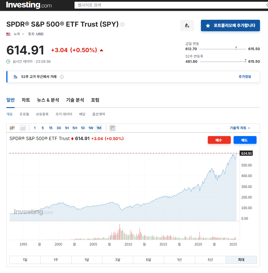 👉 SPY는 ETF계의 맏형이자 교과서 같은 존재다. 보수는 형제 ETF(VOO, IVV)에 비해 약간 높지만, 그만큼 유동성과 안정성이 압도적이다. 급할 때도 잘 팔리고, 모든 브로커와 연동되어 거래가 원활하다.