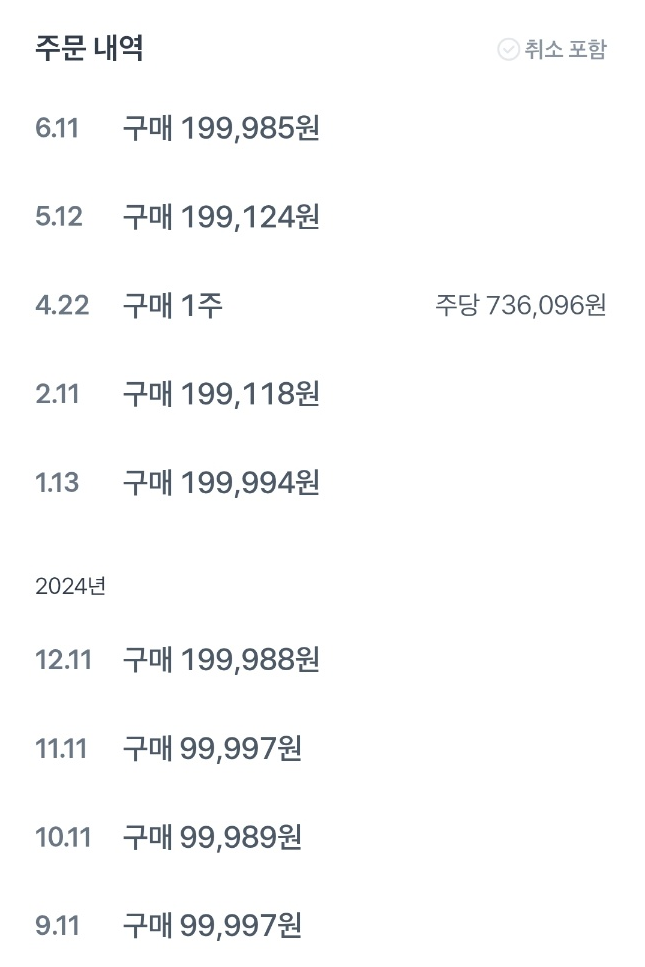 - 📌 가격: 초반엔 10만씩 모으다 20만원치로 상향