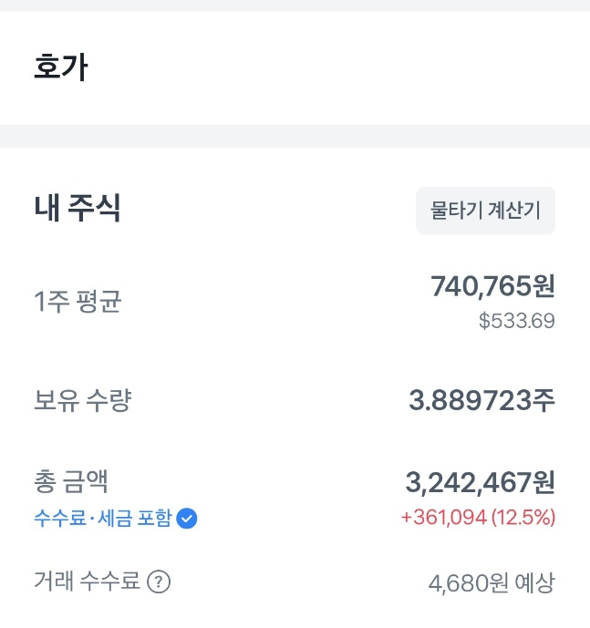 - 📅 매수일: 2023.6.12부터 꾸준히 매월 정기적 모으기중(달러환전 후 모으기중), 저점일때 1주 더사거나 함