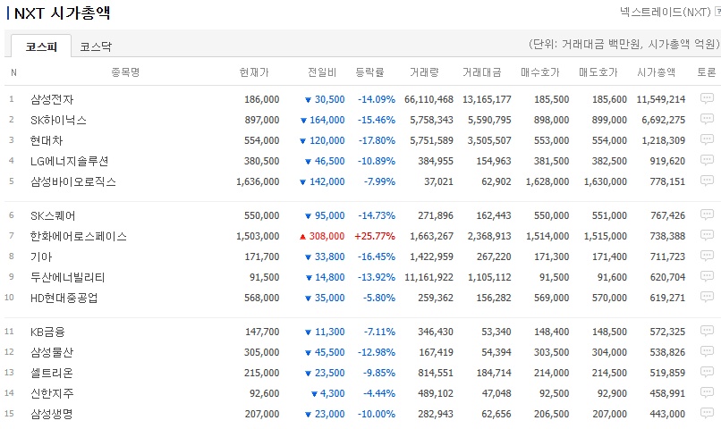 - SK하이닉스 -15.46%