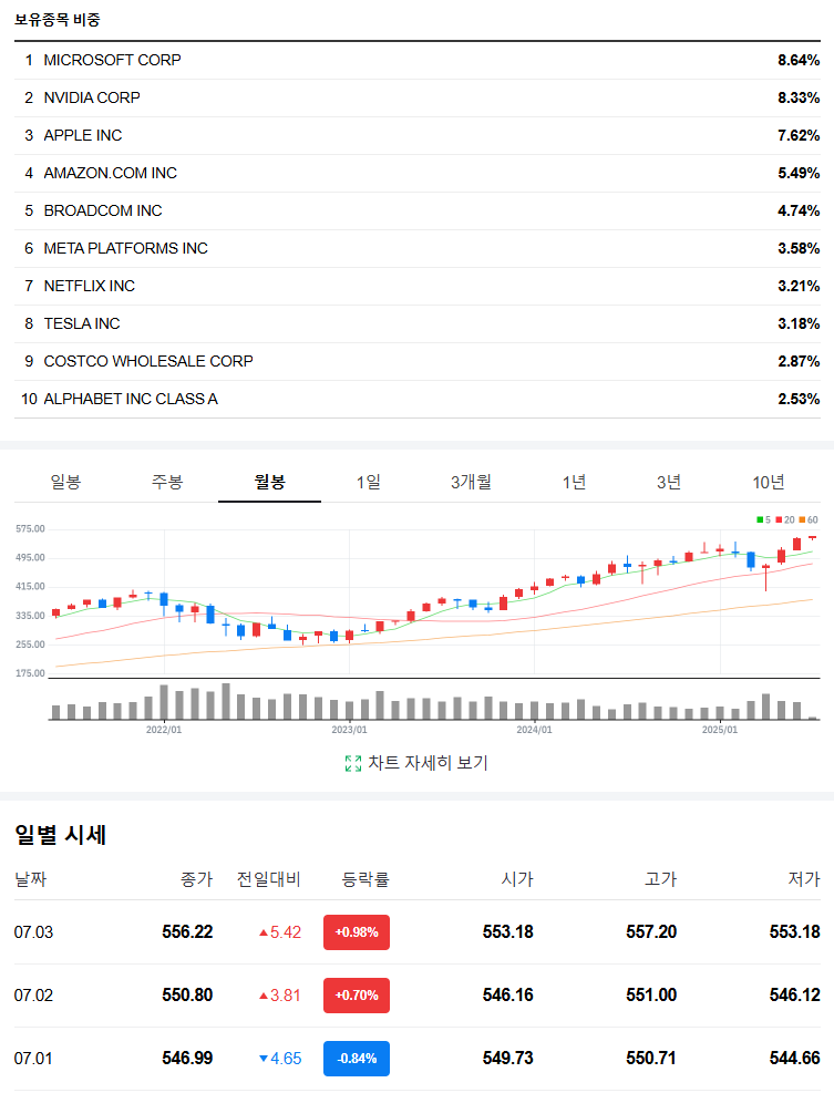 → SPY 등 종합지수 ETF와 병행하여 분산 고려