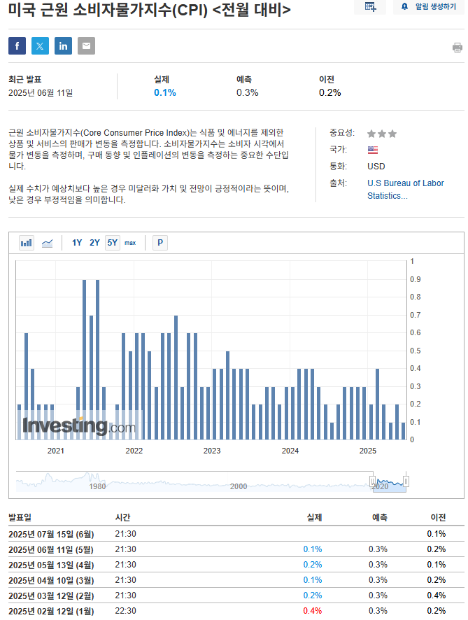 - 7월 15일 밤, 미국 CPI 발표는 시장 방향의 갈림길(원래 11일이라고 GPT가 알려줬는데 재확인하니 15일이었어요)