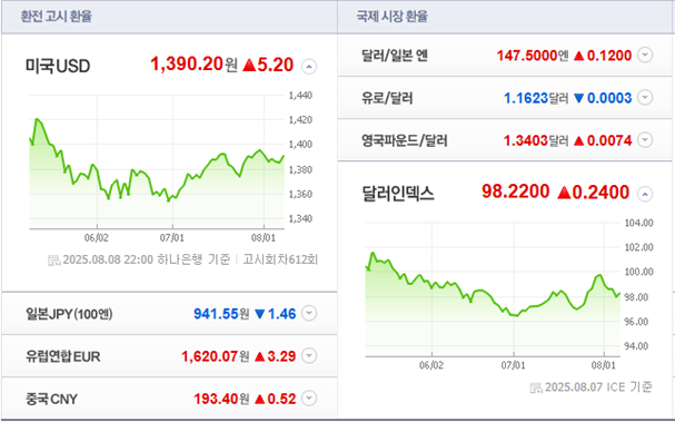 - 미국 USD/KRW 1,390.2원 (+5.2원)