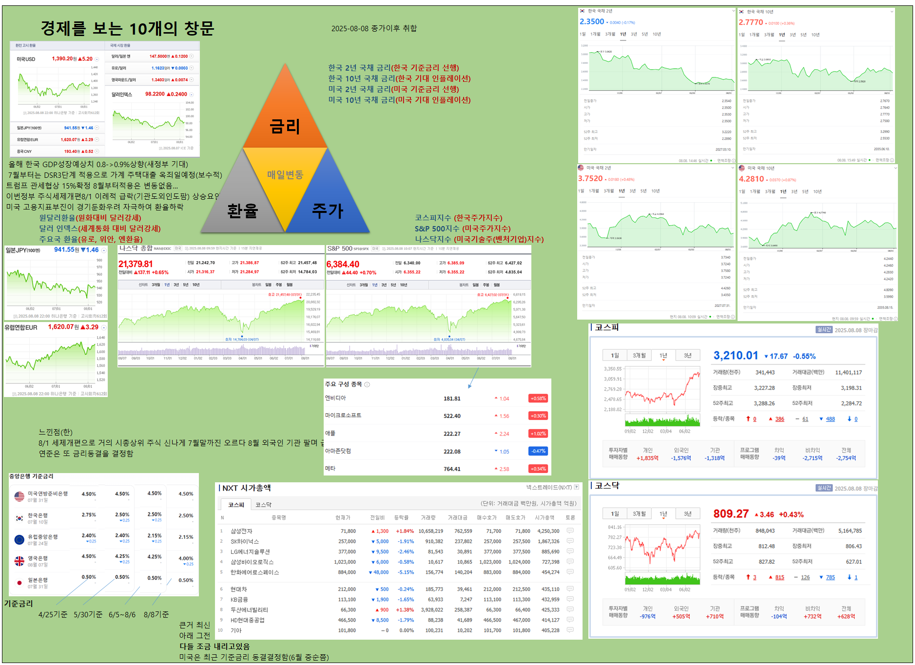 | 📊 거시경제 대시보드 #12 – 2025년 8월 22일 종가기준 “불안정한 흐름 속, 한 발 물러서면 흐름이 보인다.” (10) | 2025.08.22 |