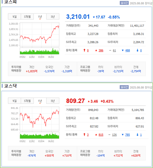 | 📊 거시경제대시보드#10– 2025년 8월 1일 종가기준– “계속오르더니... 8/1일 외국인, 하루만에 빤스런” (17) | 2025.08.01 |