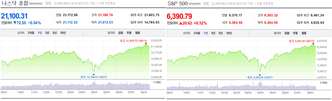 | 나스닥 | 21,100.31 | 🔽 0.34% |